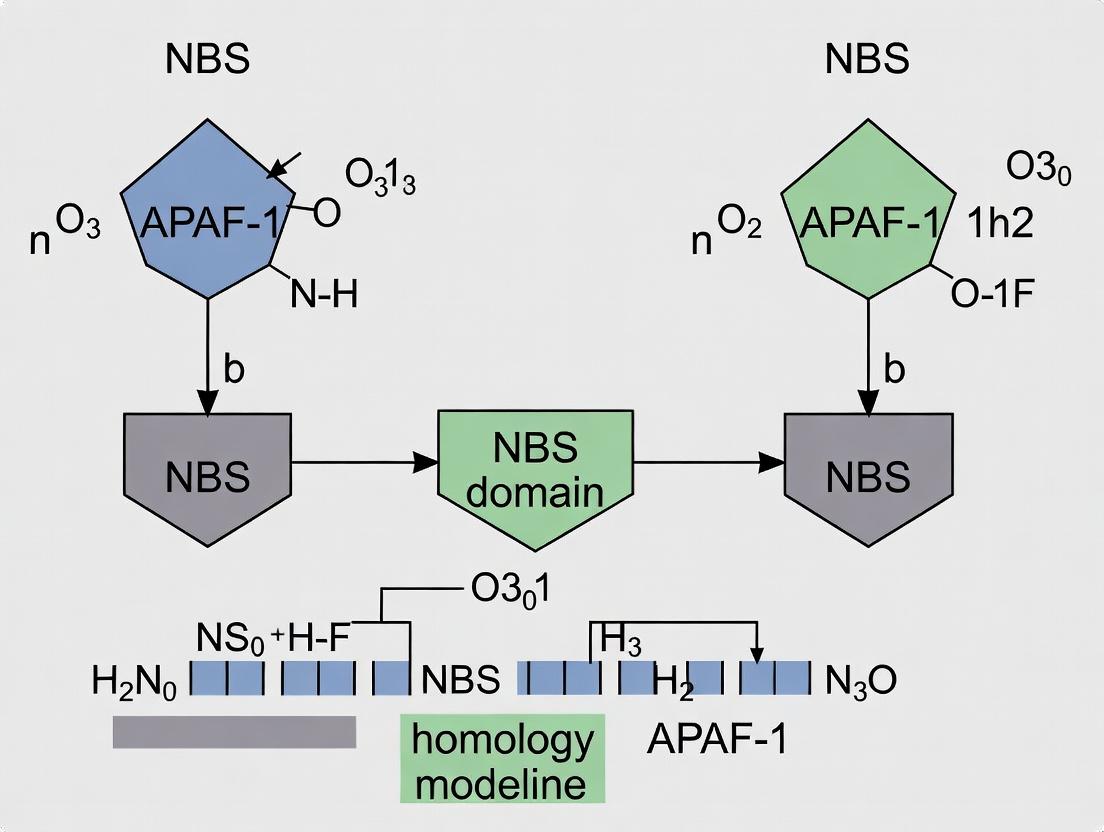 This whitepaper provides an in-depth technical analysis of the Nucleotide-Binding Site (NBS) domain, a conserved structural module pivotal for nucleotide binding and oligomerization in apoptotic and innate immune signaling proteins. The content is framed within a broader thesis on structure homology modeling, using Apoptotic Protease-Activating Factor 1 (APAF-1) as the central research paradigm. APAF-1, the core component of the apoptosome, relies on its NBS domain for dATP/ATP binding and hydrolysis, a prerequisite for its oligomerization and caspase-9 activation. This guide details the structural principles, experimental interrogation, and therapeutic implications of this critical domain for researchers and drug development professionals.
