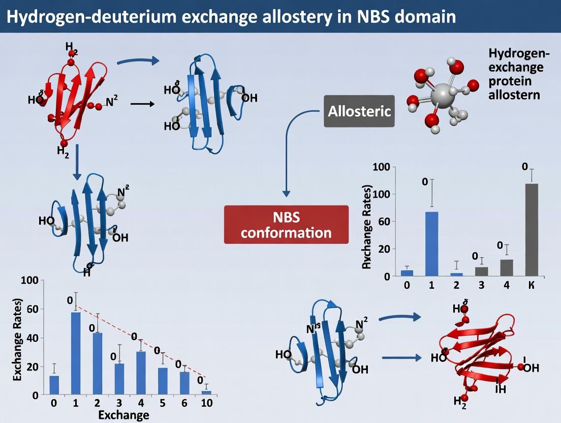 This article provides a comprehensive guide to hydrogen-deuterium exchange mass spectrometry (HDX-MS) for probing allosteric communication in nucleotide-binding site (NBS) domains, crucial targets in therapeutic development. It explores the fundamental principles of NBS allostery, details state-of-the-art HDX-MS methodologies for mapping dynamic changes, addresses common experimental challenges and optimization strategies, and validates findings through comparative analysis with complementary structural biology techniques. Aimed at researchers and drug developers, the content synthesizes current knowledge to empower the rational design of allosteric modulators for proteins like kinases, GTPases, and molecular motors.